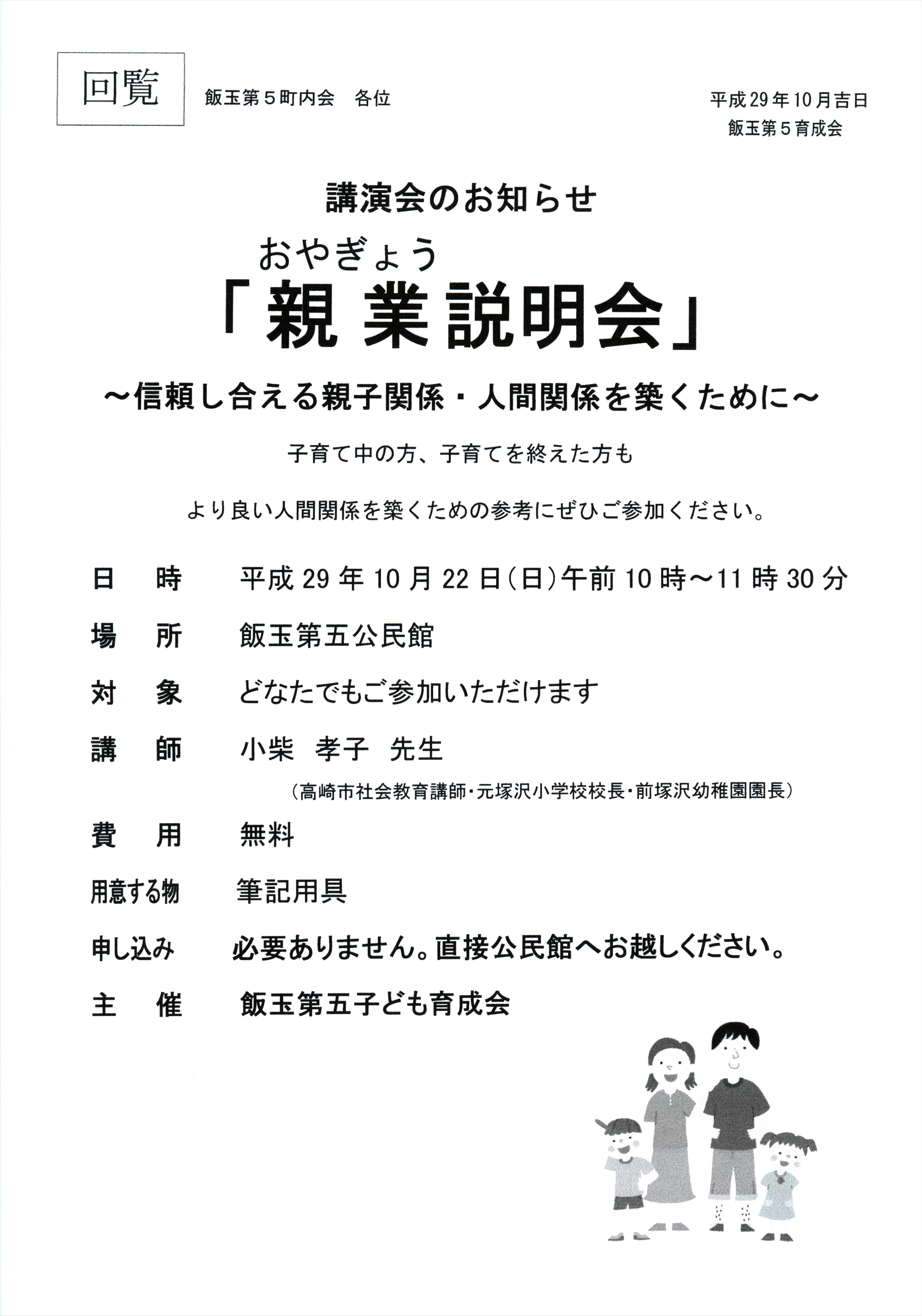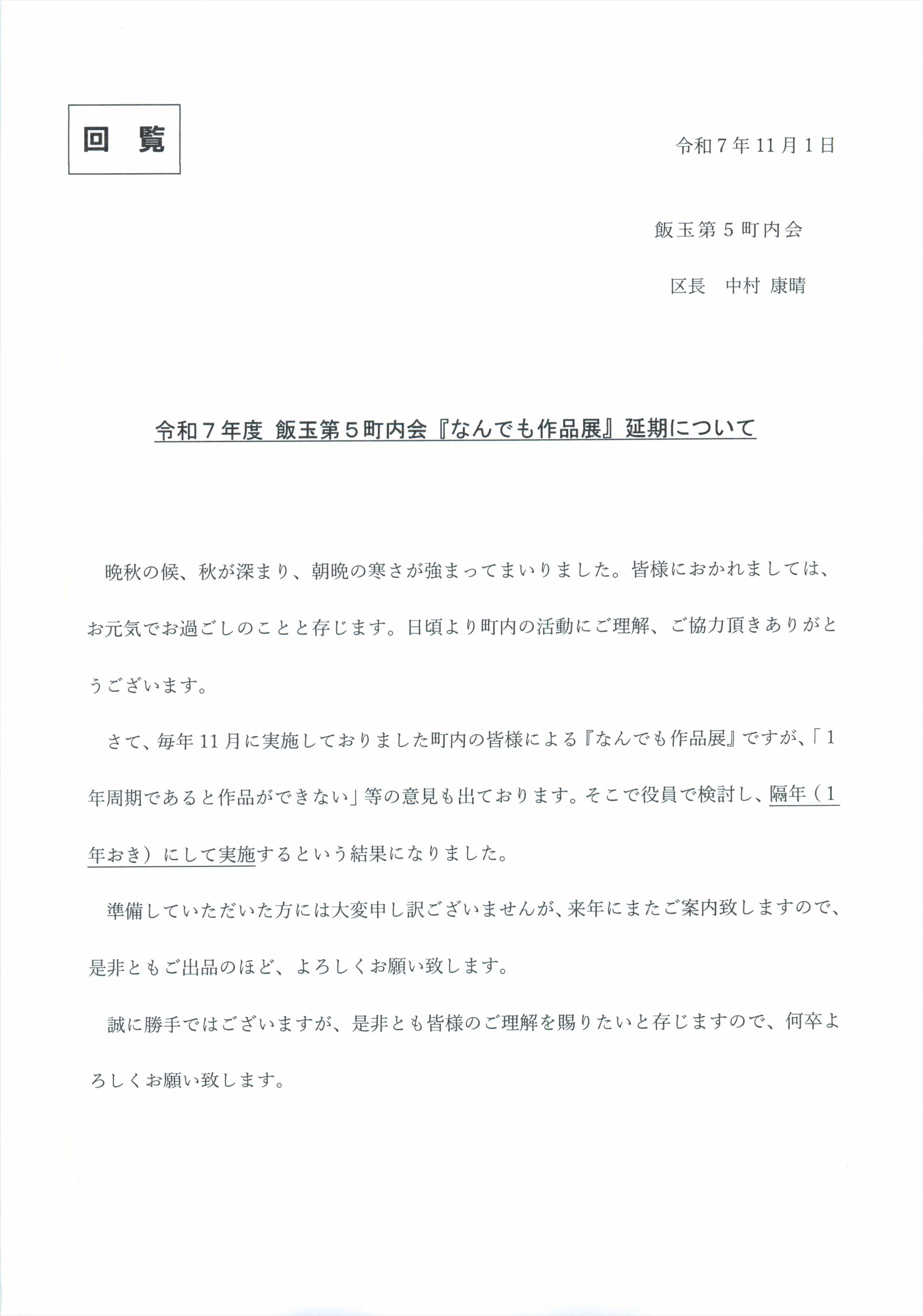 ・飯玉第5町内会の10月1日付けの回覧板をアップしました。