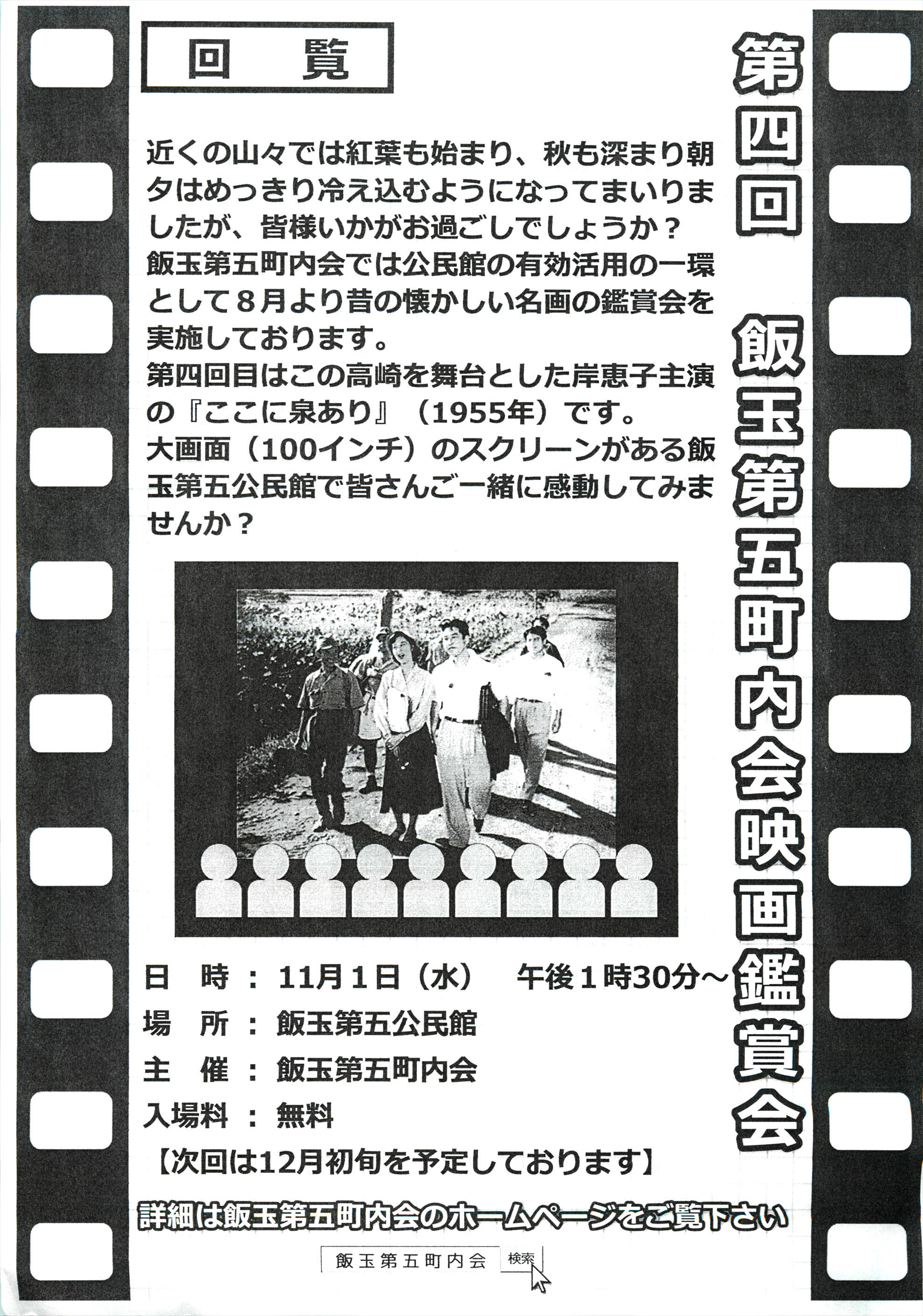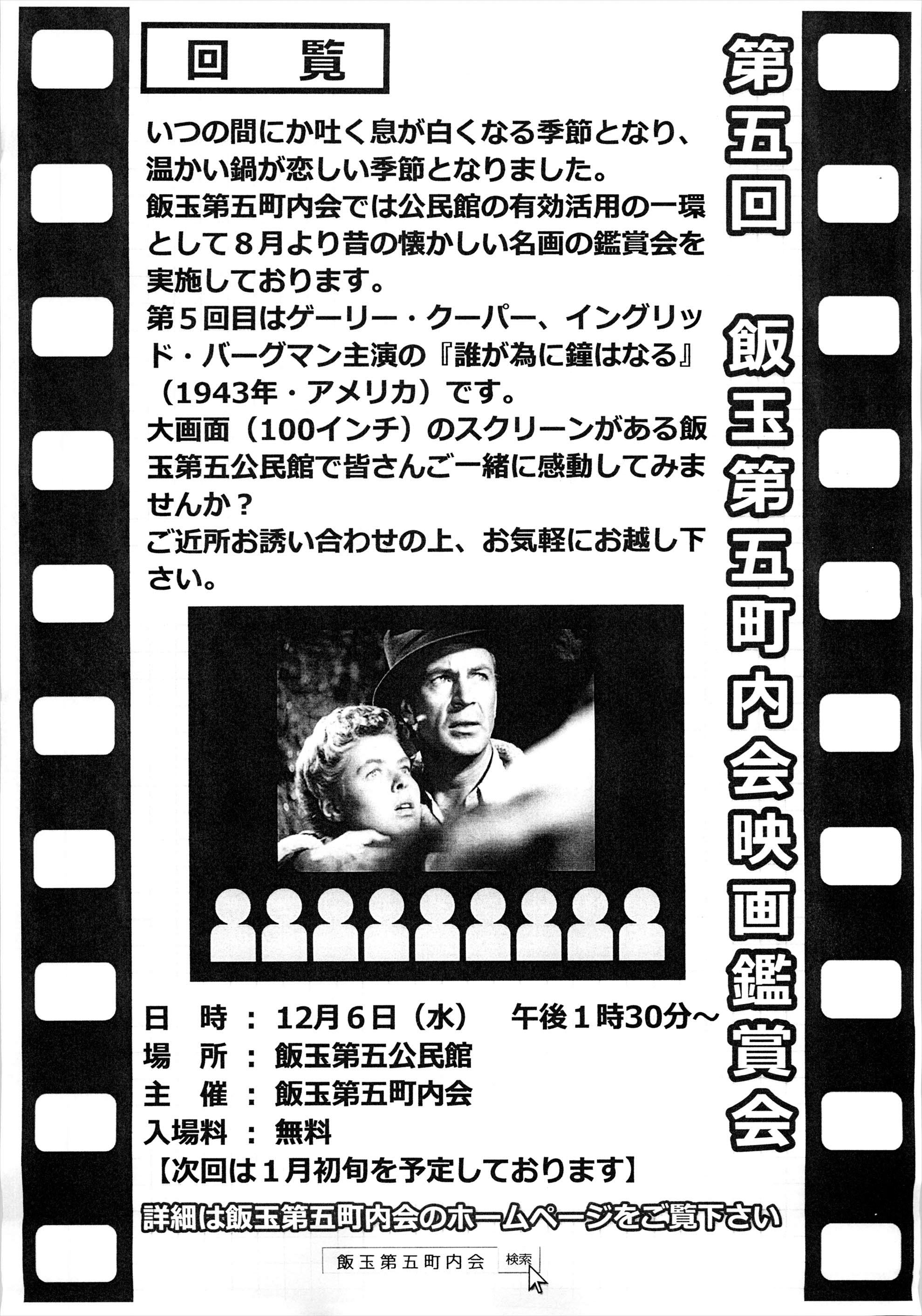 4年ぶりに「飯玉第五町内会映画鑑賞会」が復活しました。スケジュールはコチラをご覧ください。なお、YouTubeの紹介動画はこちらです。『ひまわり』『ティファニーで朝食を』。