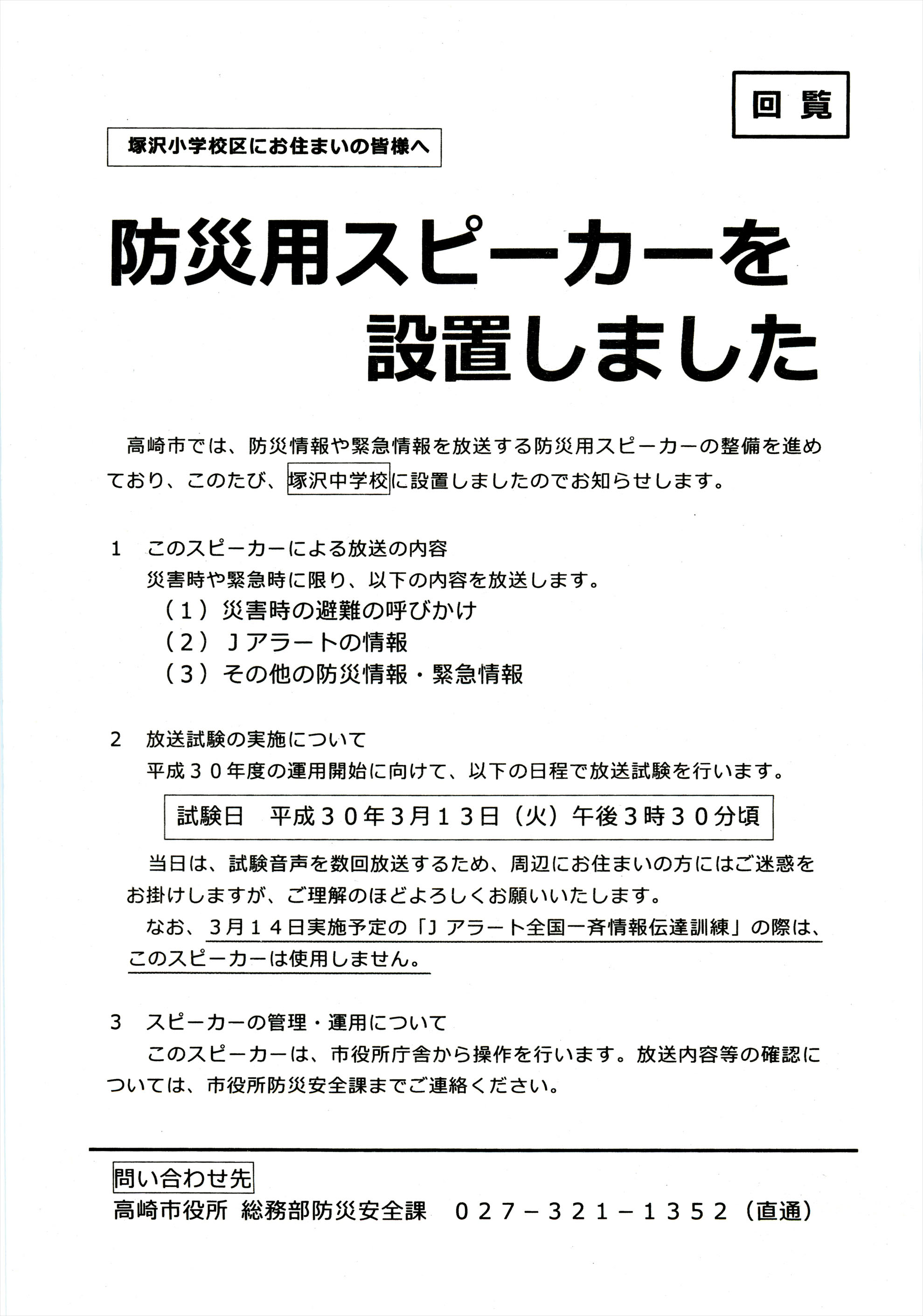 5月1日広報と一緒に「塚沢小学校区地図」が配布されました。