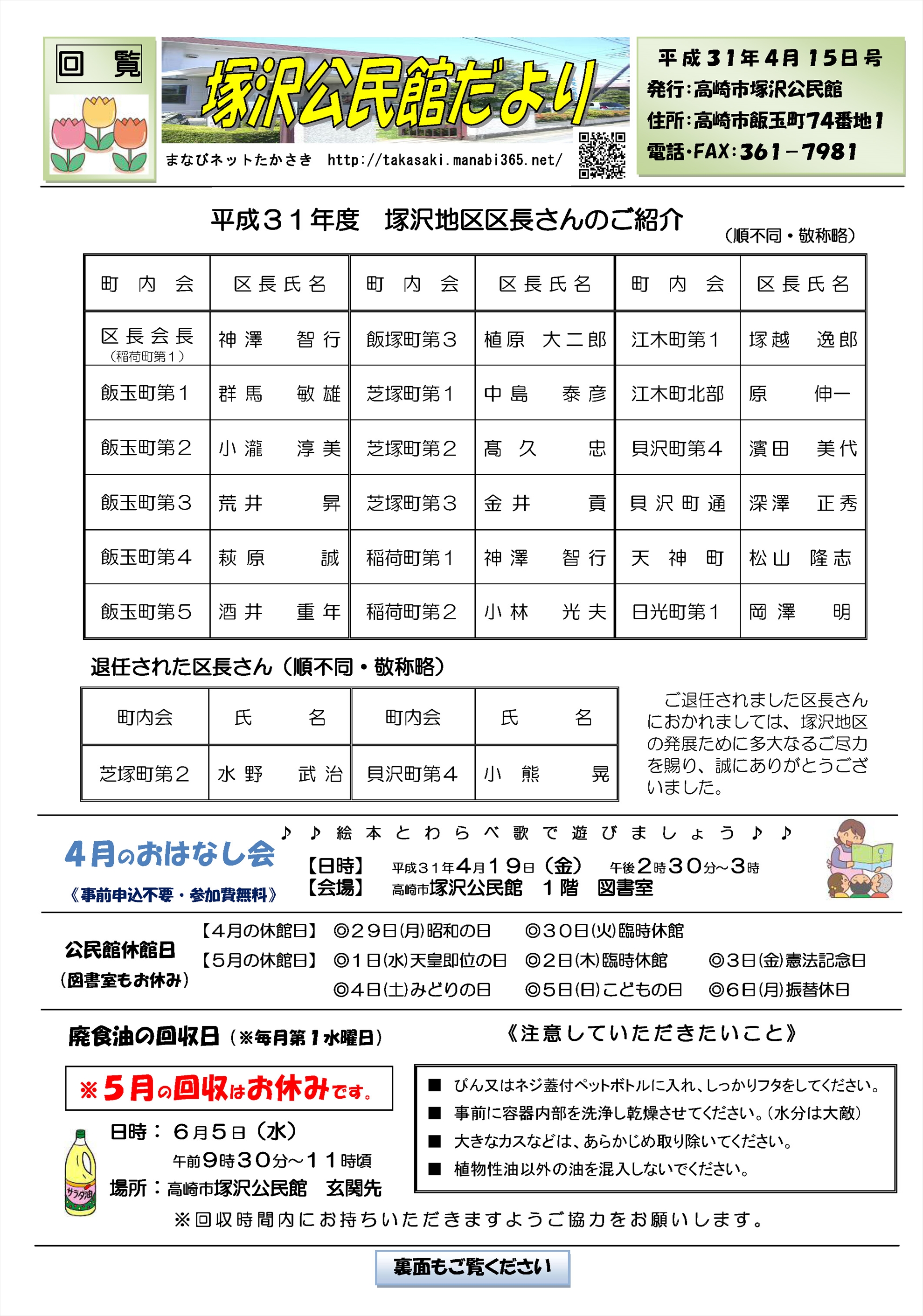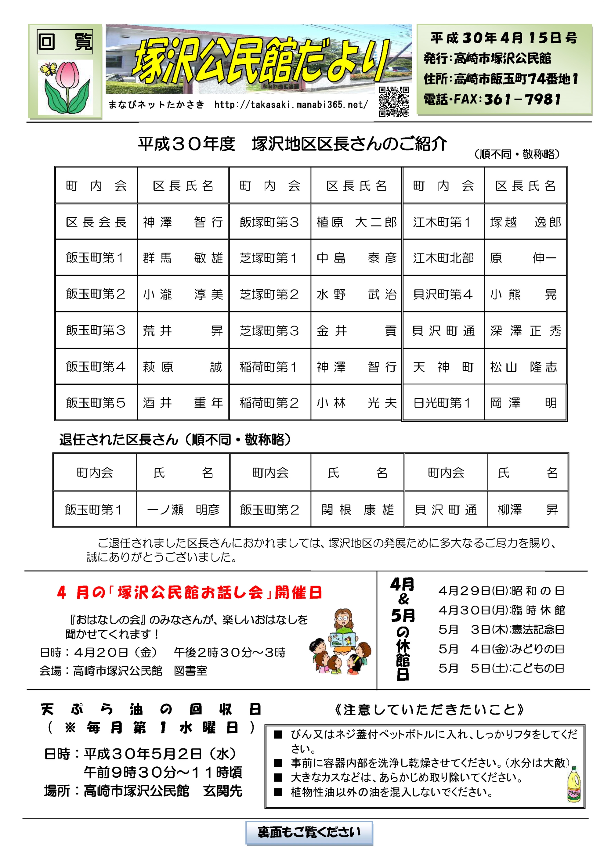 ☆塚沢公民館様のご協力により「塚沢公民館だより」がカラーになりました。