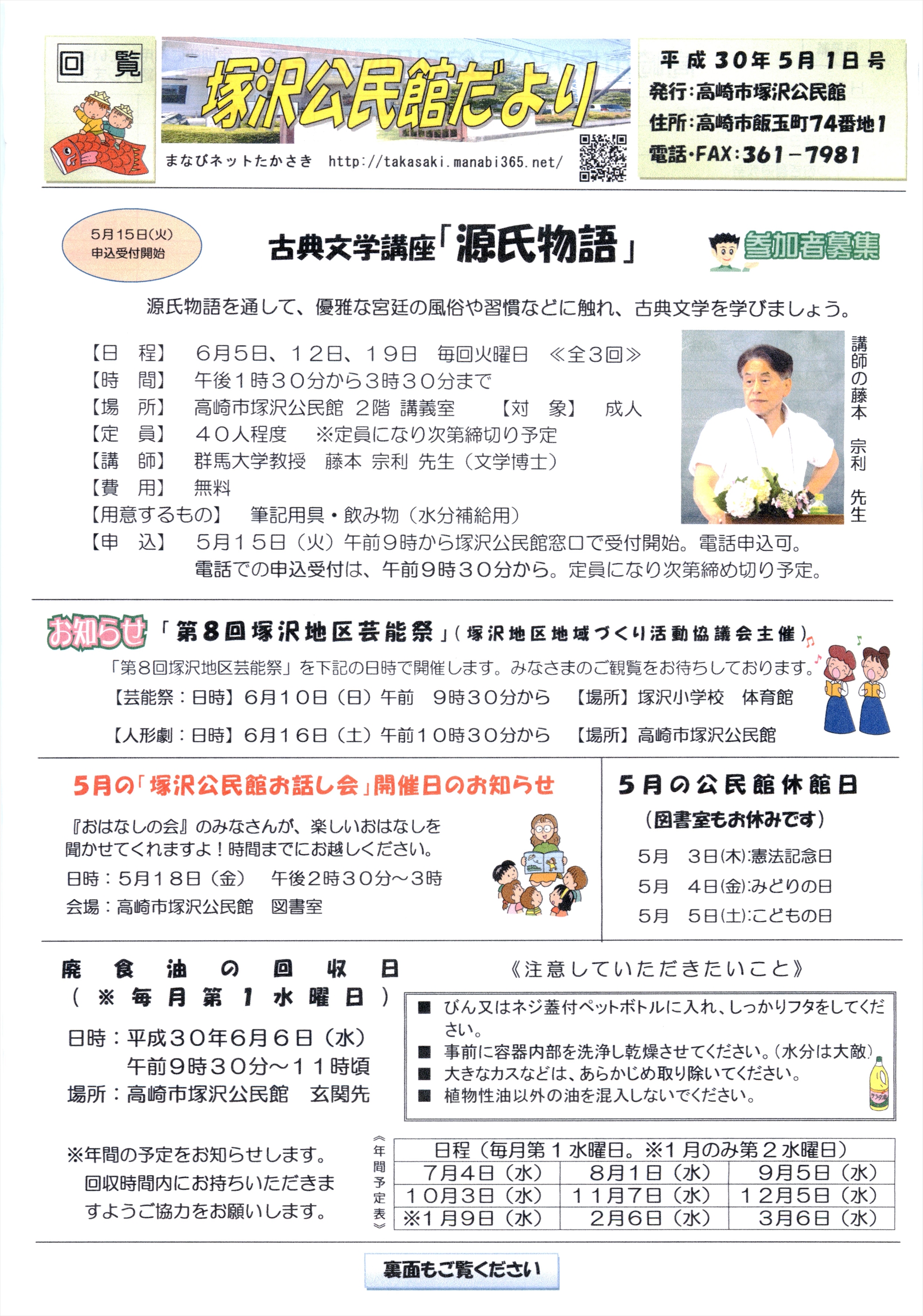 ・塚沢公民館で「古典文学講座『源氏物語』」など、興味深い講座が開講されます。