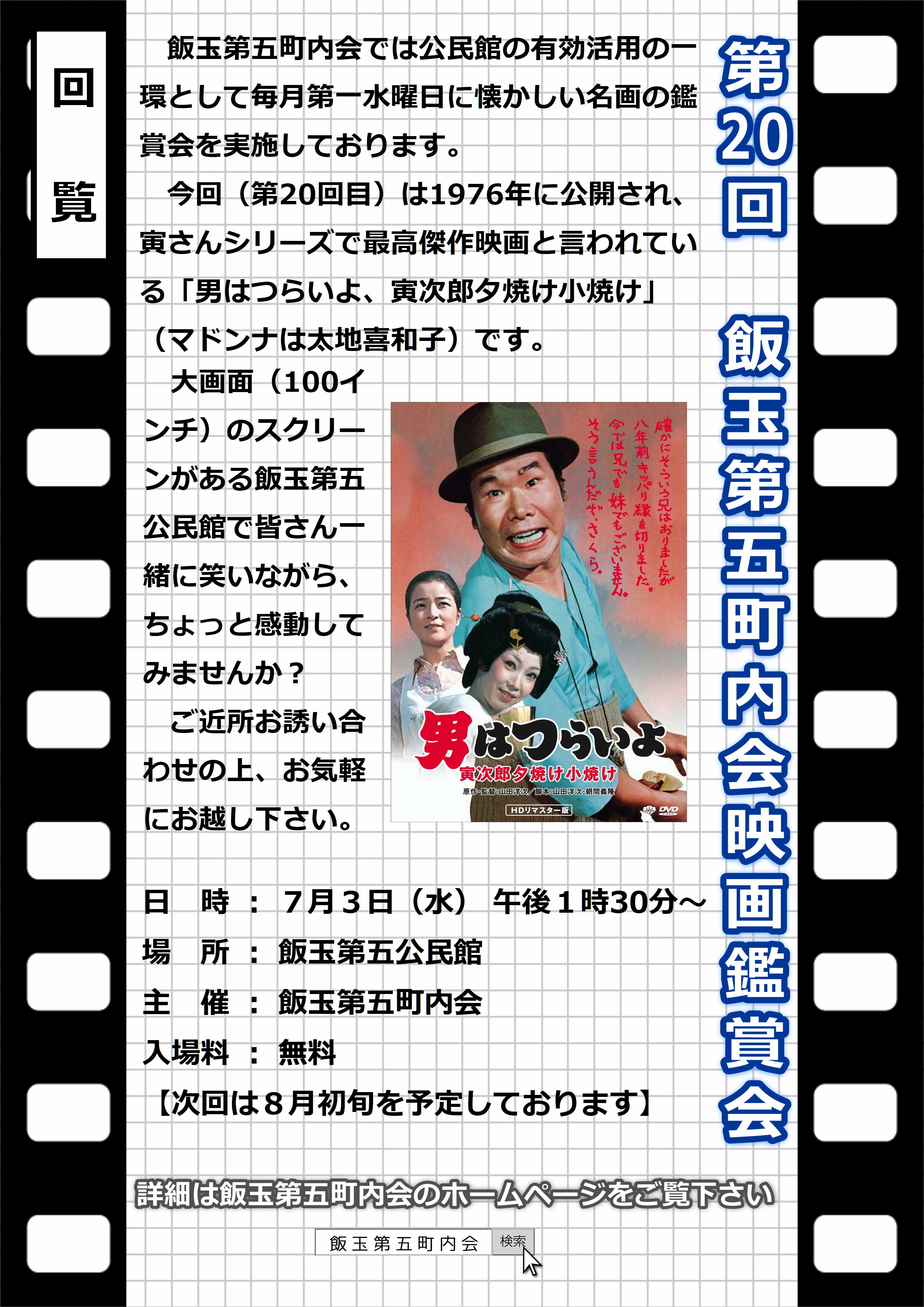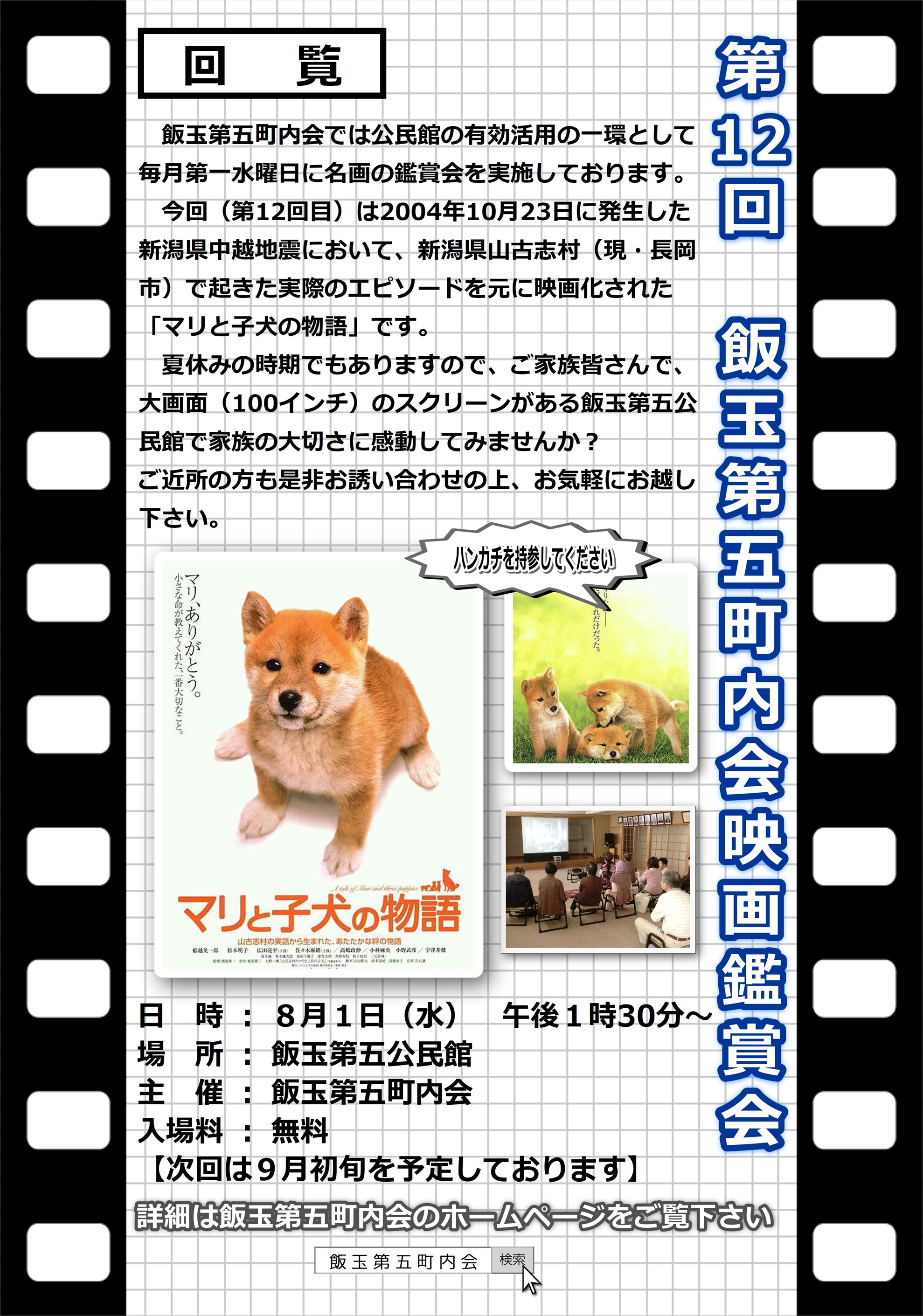 例年盆踊り大会1日目(8月12日)に実施されてます「映画鑑賞会」の情報をアップしました。