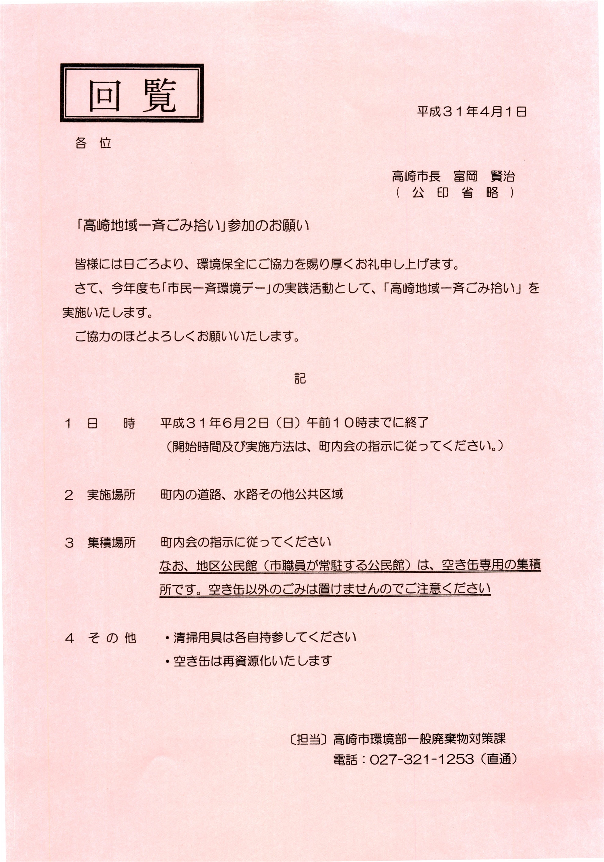 ・飯玉第5町内会の4月1日付けの回覧板をアップしました。