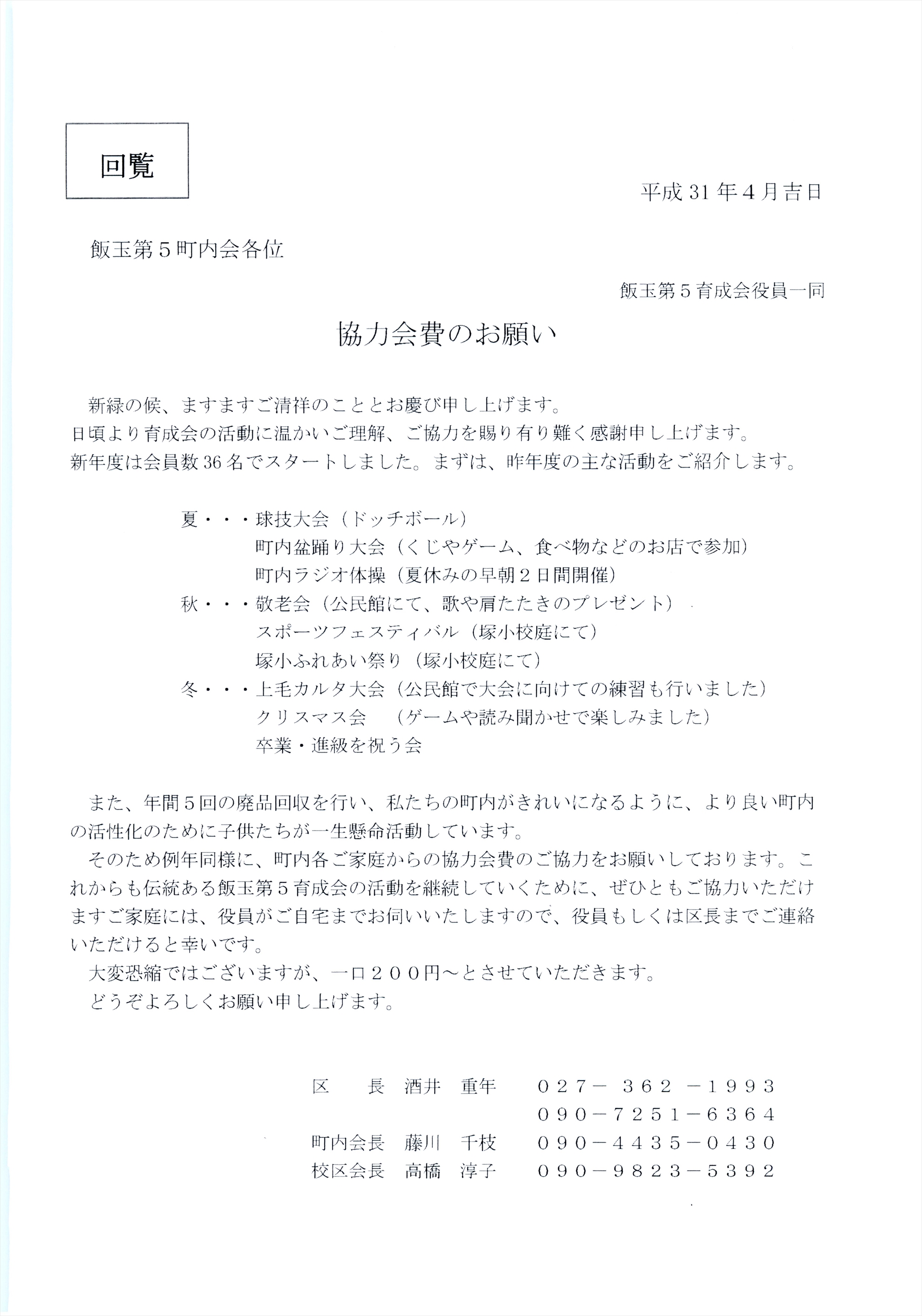 ・飯玉第5町内会の5月1日付けの回覧板をアップしました。