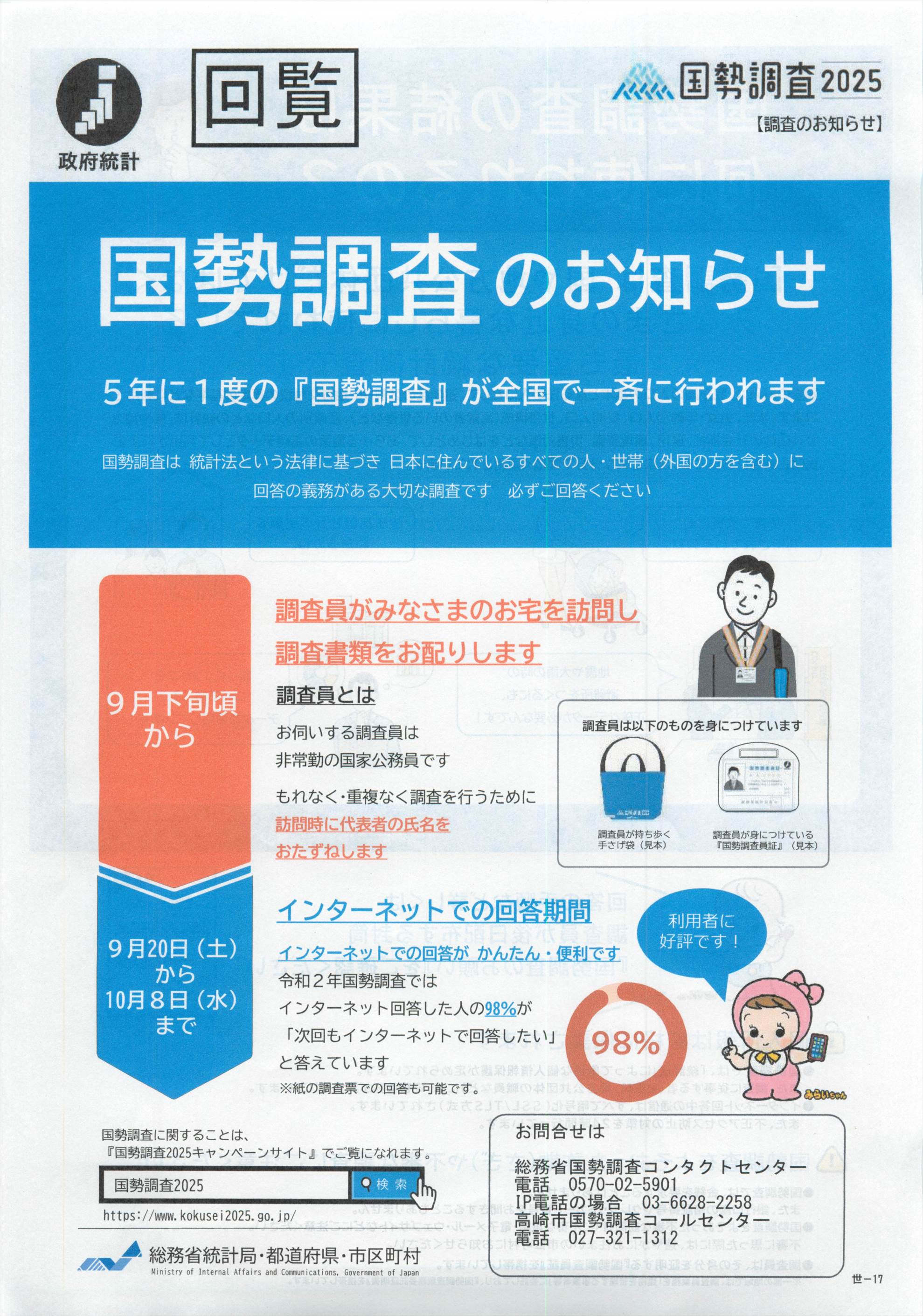 ・また9月20日以降、国勢調査が始まります。町内の役員で頑張って調査しますので、ご協力をよろしくお願いいたします。